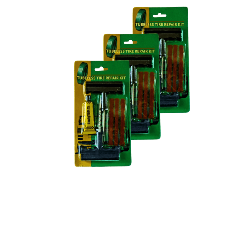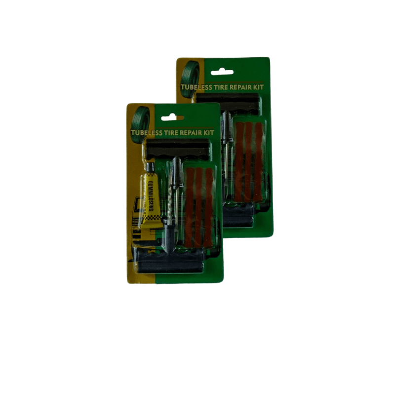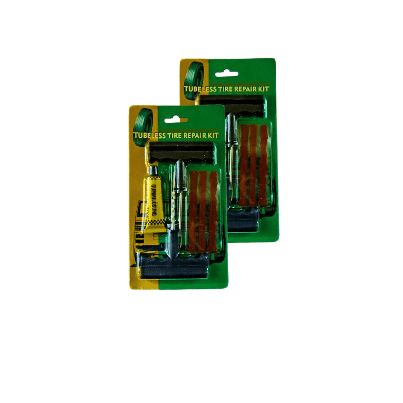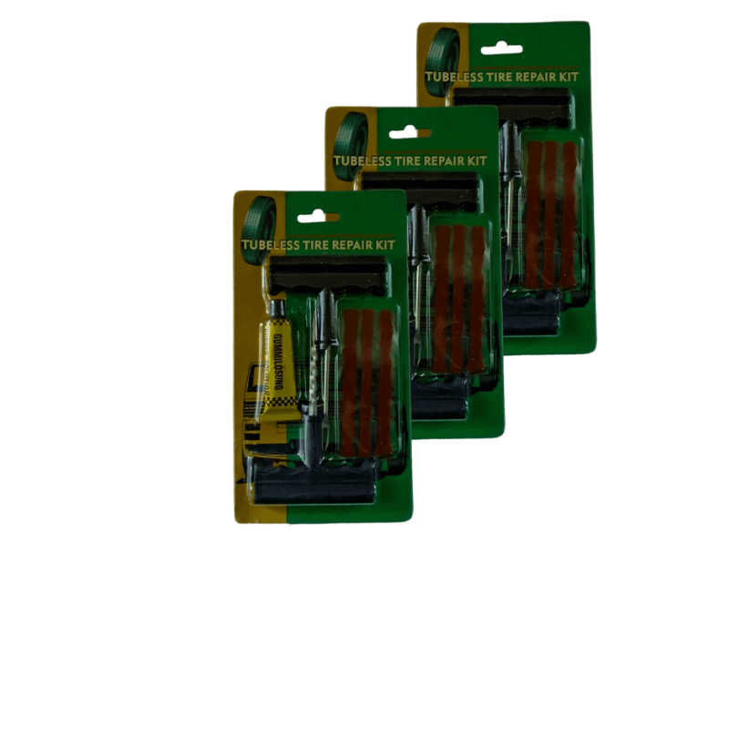 Includes heavy-duty tools, repair plugs, and rubber cement. Everything you need to tackle punctures fast.